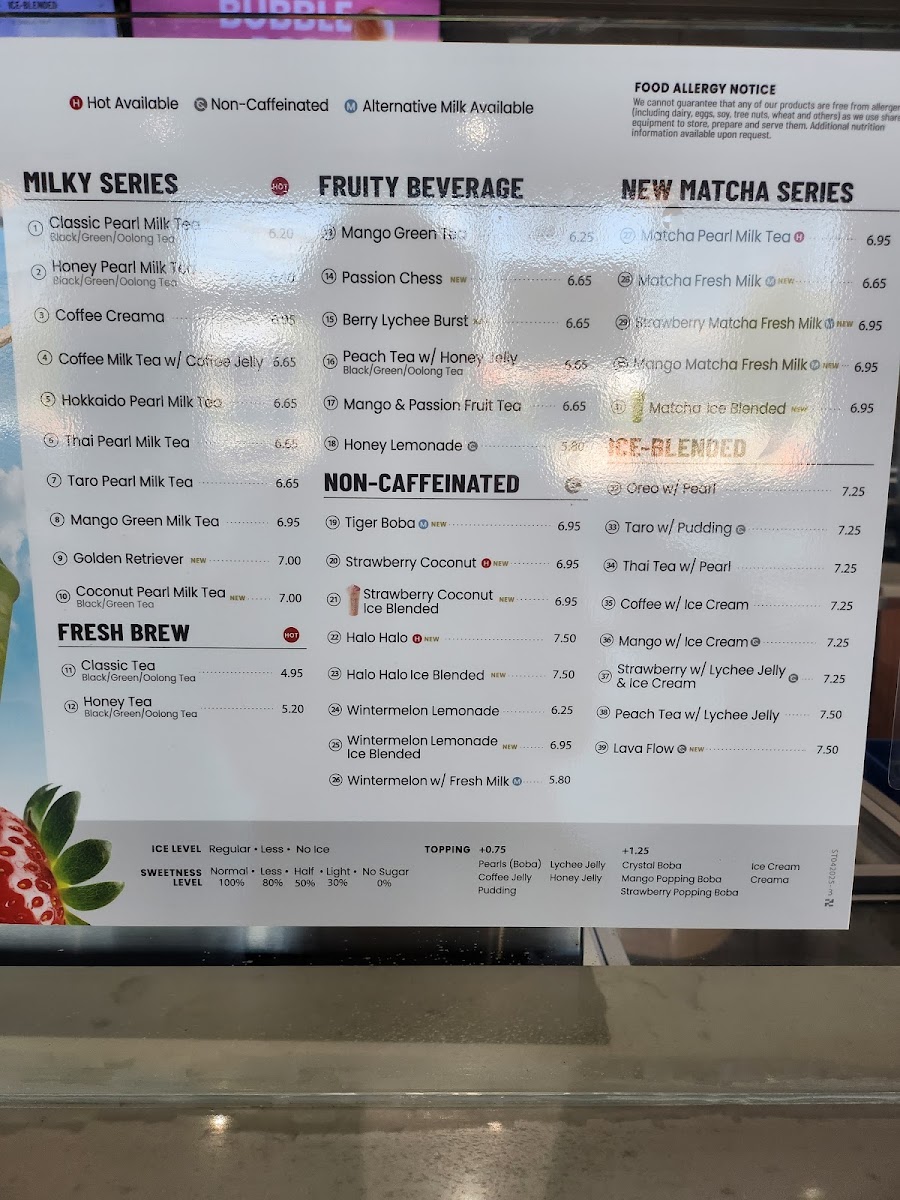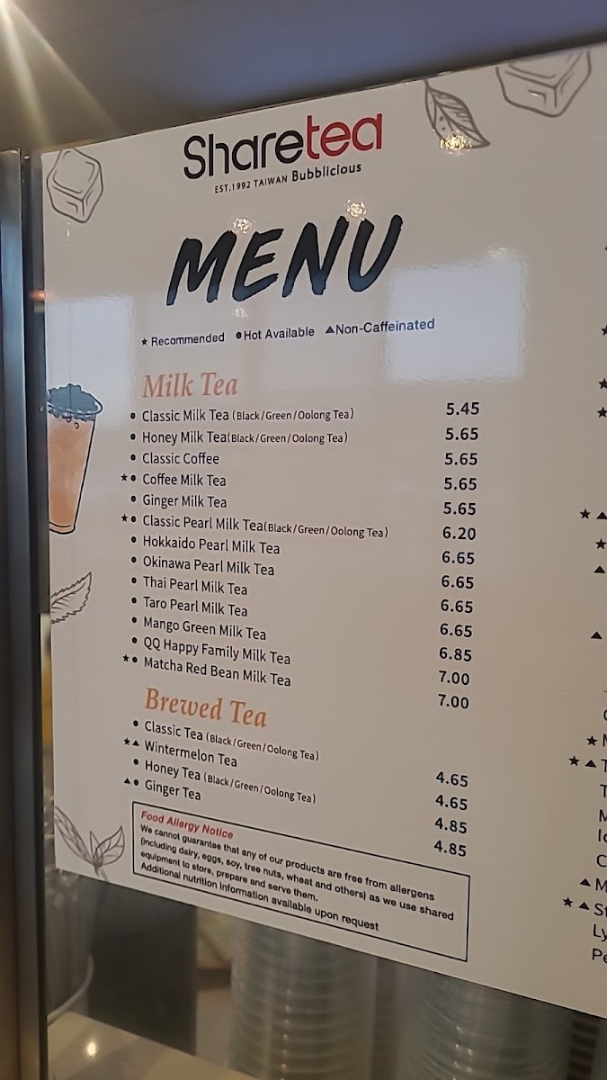 Overall, the menu at Sharetea Des Moines offers an impressively diverse selection that caters to a wide range of tastes, from classic teas to creative specialty drinks and desserts. The Fresh Brew options like Honey Tea and Classic Tea provide simple, refreshing choices, while the Shizuoka Matcha Series-featuring drinks such as Strawberry Matcha Fresh Milk, Mango Matcha Fresh Milk, and Matcha Pearl Milk Tea-adds a rich, earthy twist for matcha lovers. Indulgent treats like Oreo Ice Blended W/Boba Pearls, Thai Tea Ice Blended W/Boba Pearls, and Strawberry Ice Blended W/Lychee Jelly & Ice Cream stand out in the Ice Blended category, while non-caffeinated picks like Wintermelon Lemonade and Strawberry Coconut Milk Tea ensure there’s something for everyone. Fruity and refreshing options such as Bobo Pomango, Honey Lemonade, and Mango & Passion Fruit Tea balance sweetness and tang, and the Yogurt Freeze selections like Peachy Honey With Peach Popping Boba bring a playful texture. The menu also shines with unique offerings like Phantom Pumpkin and Jack-O-Brew from the Halloween Pumpkin line, alongside creative desserts like Original Bubble Pop Waffle W/ Oreo Cookies and Original Bubble Waffle W/ Mini Chocolate Chips. Overall, the variety, creativity, and combination of flavors make this menu both exciting and satisfying for both first-time visitors and regular bubble tea enthusiasts.